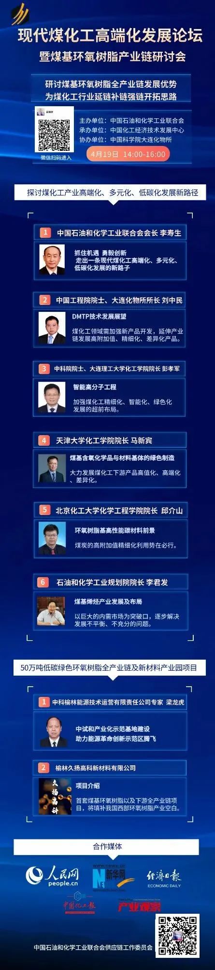 中国石油和化学工业联合会为了进一步研讨榆林久扬50万吨低碳绿色环氧树脂全产业链及新材料产业园项目产业链发展优势,为煤化工行业延链补链强链开拓思路,2022年4月19日举办“煤基低碳环氧树脂产业链发展研讨会”,会议将以线上形式向全行业直播。
