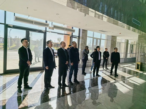 在基地办公楼大厅,调研团一行观看了公司宣传片,听取了朱序强关于榆横综合中试及示范基地建设背景、产业规划、项目建设、运行机制及优势等有关情况的详细介绍,调研期间,调研团一行还参观了中试基地标准化厂房建设现场,并围绕厂房建设标准、相关手续申报等方面进行了交流。